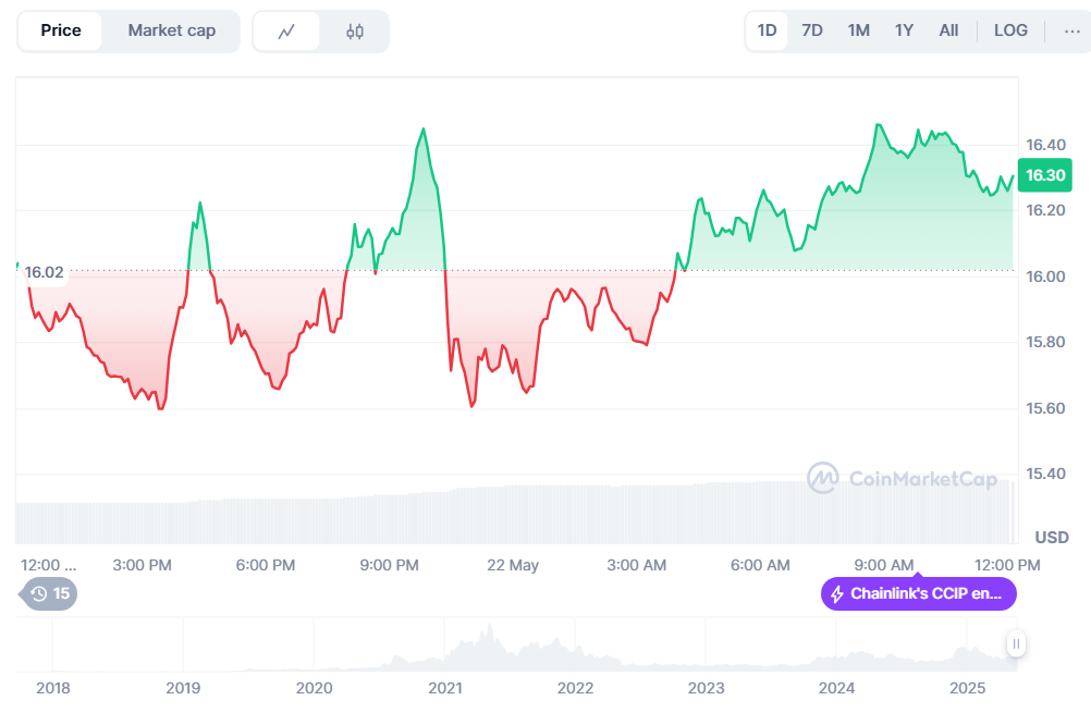Chainlink’s forecasted movement suggests a consistent pattern of annual appreciation. The current year projects a price of $16.17, followed by $16.98 in 2026, $17.83 in 2027, and continuing toward $20.64 by 2030. These figures represent only a 5% increase year-on-year, but that slow climb also mirrors the sentiment surrounding Chainlink as a dependable utility coin in an ecosystem dominated by flashy narratives.
