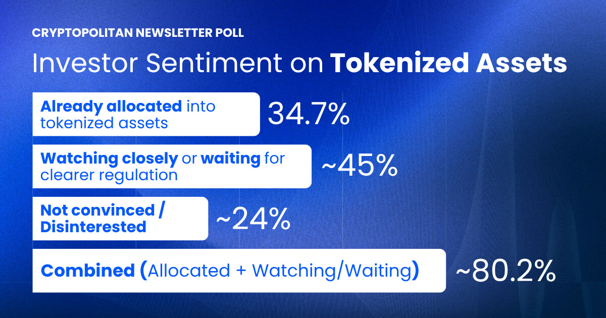 As done in Cryptopolitan’s previous report, the poll, conducted via the Cryptopolitan newsletter on April 6, 2026, provides a glimpse into how investors are viewing or positioning themselves in this market. The results reveal a clear pattern in that an audience who are investment aware across crypto, AI and tech is no longer dismissing tokenized assets but evaluating them and increasingly acting on that conviction.
