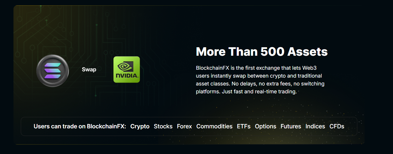 BlockchainFX is promoting itself as one of the promising crypto presales to buy today by overcoming one of the greatest difficulties in current trading: fragmentation. Today’s traders navigate between many apps only to access stocks, forex, crypto, ETFs, commodities, and futures, but BlockchainFX unites these 500+ assets into one seamless super-app.