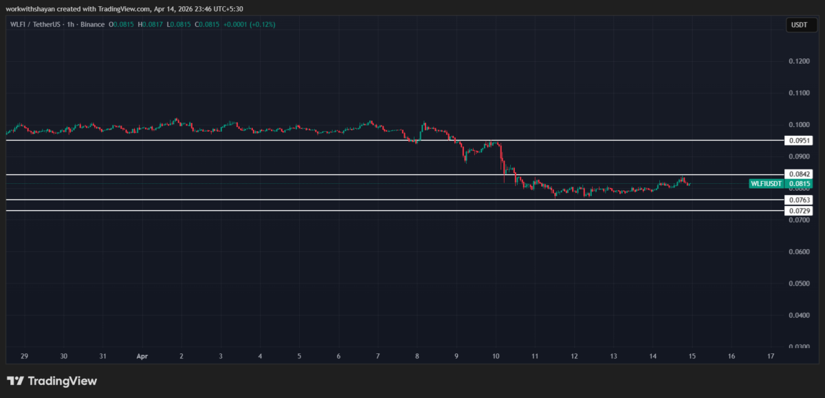 The WLFI price analysis for 14 April confirms that WLFI faces increasing volatility as it surges toward $0.081. Currently, the bulls are aiming for further surges.